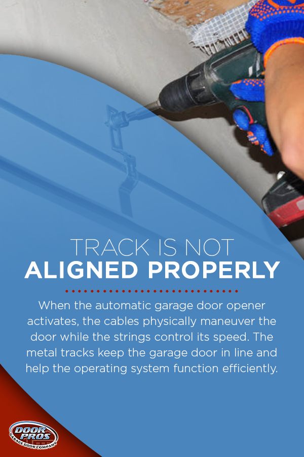 A slight misalignment on the track could slow down the movement of the garage door. You would hear a grinding or whining noise as the garage door moves if any of the tracks are bent. If your garage door doesn't open or close, the track may be broken. In that case, you may need to get your garage door system replaced.