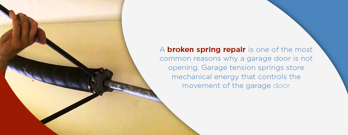 A broken spring repair is one of the most common reasons why a garage door is not opening. Garage tension springs store mechanical energy that controls the movement of the garage door. Wear and tear could weaken the tension springs, which could lead to the garage door not working.